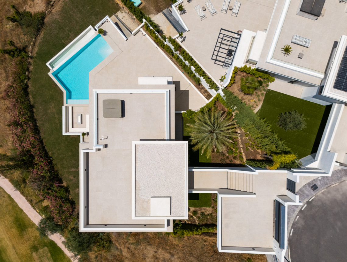 Nestled in the exclusive La Resina Golf estate between Marbella and Estepona's flourishing residential area, this exceptional villa offers a harmonious blend of cutting-edge architecture and luxurious functionality. Designed by acclaimed architect Francisco Martínez Galván, the four-level residence spans a total built area of 674 square meters, including 503 square meters of refined interior living space and 171 square meters of terraces that seamlessly connect indoor comfort with outdoor elegance.