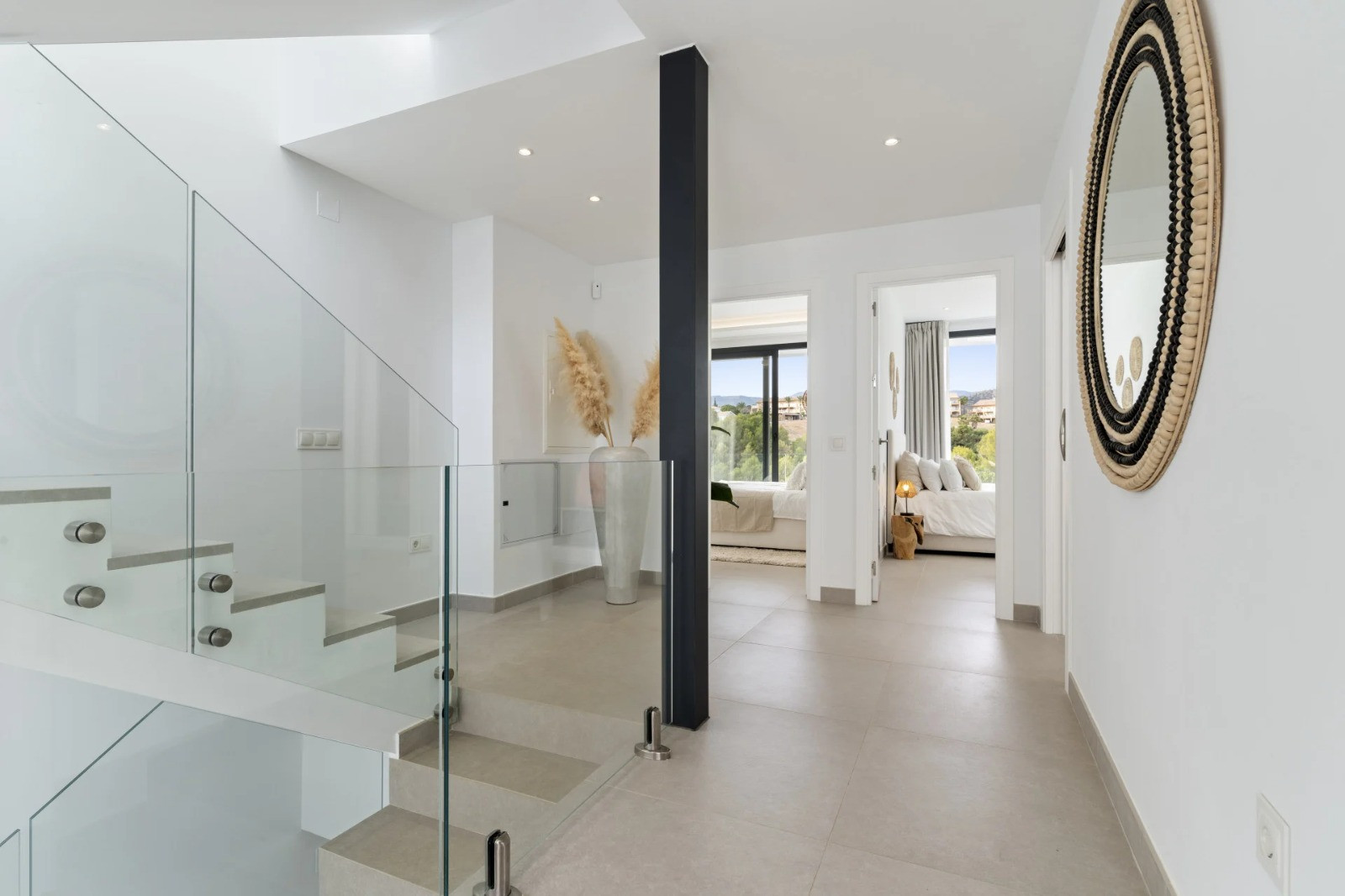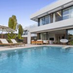 This west-facing villa in La Resina Golf on Marbellas New Golden Mile is a celebration of open-air living and modern design. Expansive floor-to-ceiling windows, sleek glass balustrades, and a soft, neutral palette create a seamless connection between indoors and out—framing golden sunsets and uninterrupted views.