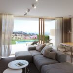 Every home offers at least 128 m² of beautifully designed living space, featuring expansive windows that flood the interiors with natural light and frame uninterrupted views of the Mediterranean Sea and lush Andalusian countryside. The open-plan layout includes a chic kitchen with a central island, crafted with high-end materials and finishes throughout.