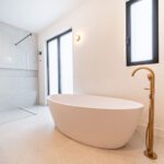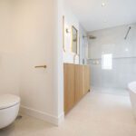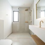 The villa is equipped with cutting-edge amenities, ensuring both comfort and sustainability. Solar panels harness renewable energy, while advanced climate control systems maintain the perfect indoor environment year-round. Underfloor heating in all bathrooms provides a touch of luxury, and the fitted wardrobes in each bedroom offer ample storage while maintaining a sleek and modern aesthetic.