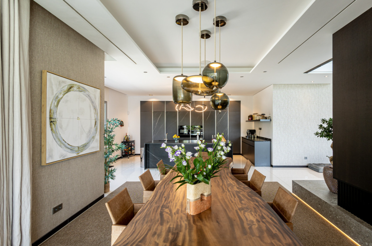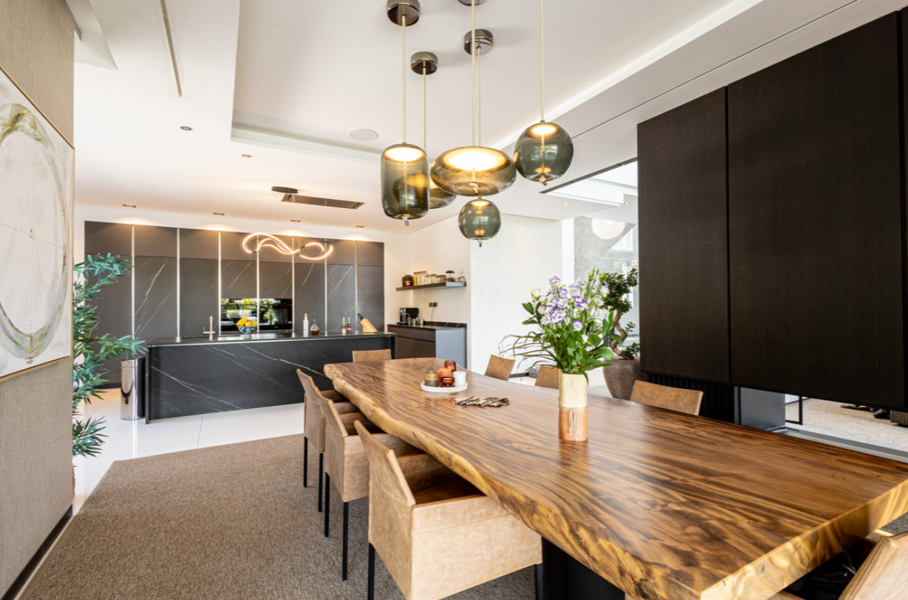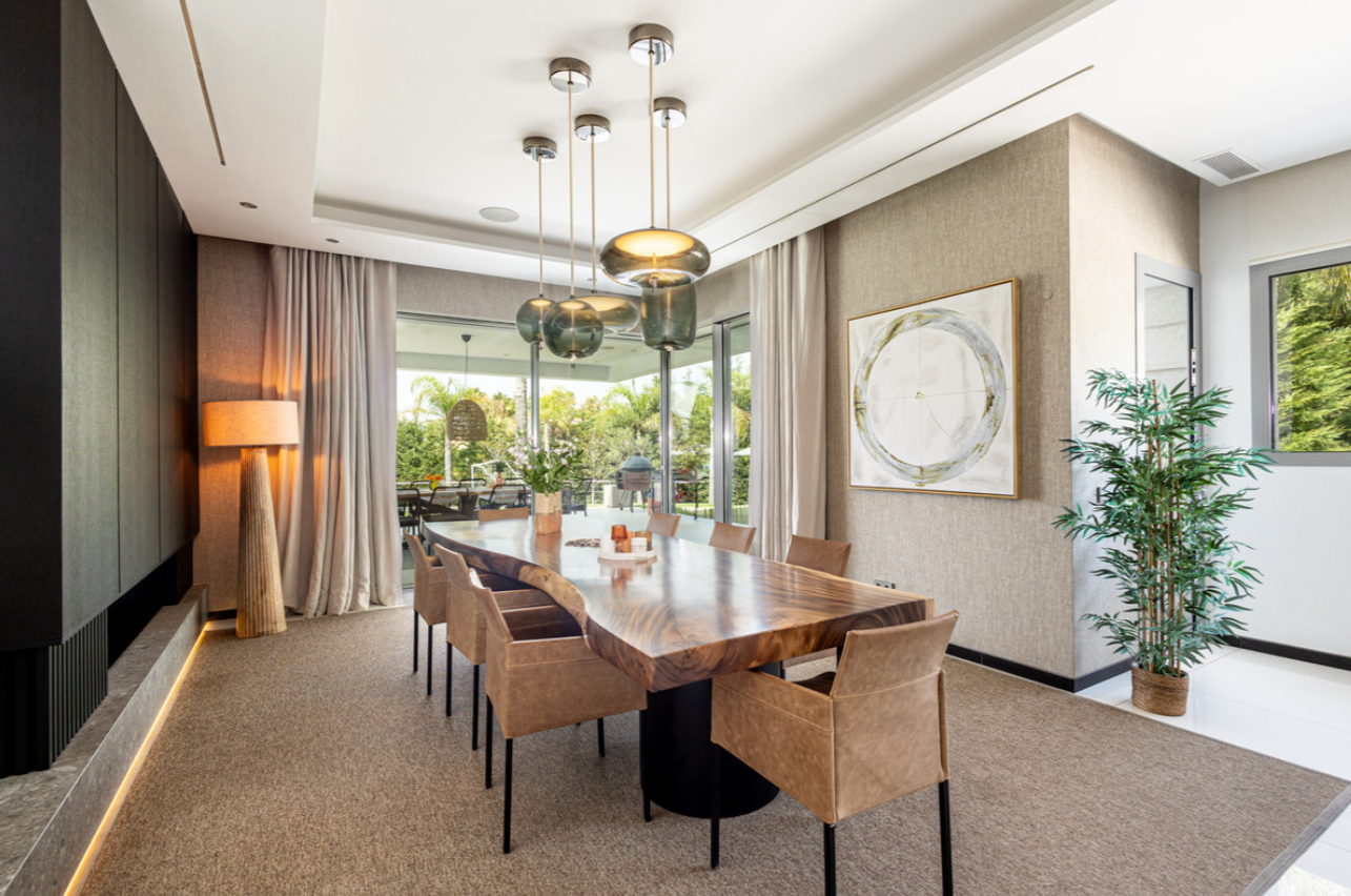 Set on a fully enclosed corner plot, the villa is surrounded by a lush tropical garden with meticulously maintained lawns and a stunning private swimming pool complete with sunbathing areas. The interior, designed by renowned designer Heidi Gubbins, blends top-quality materials with a sophisticated palette of warm tones, adding character and elegance to every room.