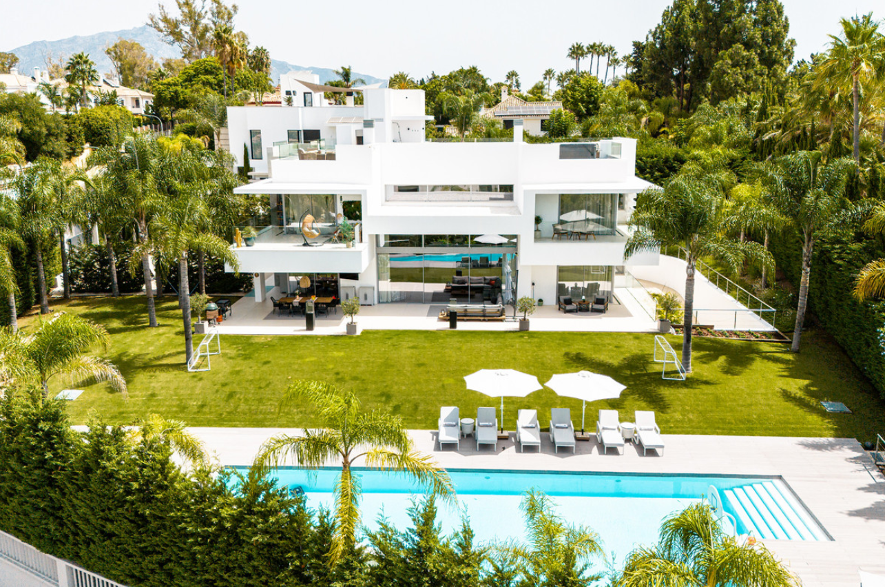 Nestled in the exclusive enclave of Guadalmina Baja, Marbella, this stunning beachside contemporary six-bedroom villa epitomizes elegance, privacy, and modern architectural excellence in one of the Costa del Sol’s most prestigious residential areas.