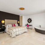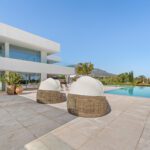 Inside, the villa impresses with expansive interiors thoughtfully curated with natural textures, rich finishes, and bespoke design elements. High ceilings and elegant lighting enhance the sense of space, while the seamless transition between indoor and outdoor areas invites year-round enjoyment of the Costa del Sol’s enviable climate.