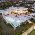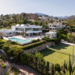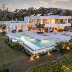 Discover an extraordinary contemporary villa in the prestigious La Cerquilla neighbourhood, ideally situated in the heart of Nueva Andalucía’s sought-after Golf Valley. This exclusive 7-bedroom residence is set on a generous 2,548m² plot, offering exceptional privacy and breathtaking panoramic views of Marbella’s iconic La Concha mountain and the shimmering Mediterranean Sea.