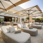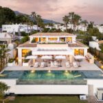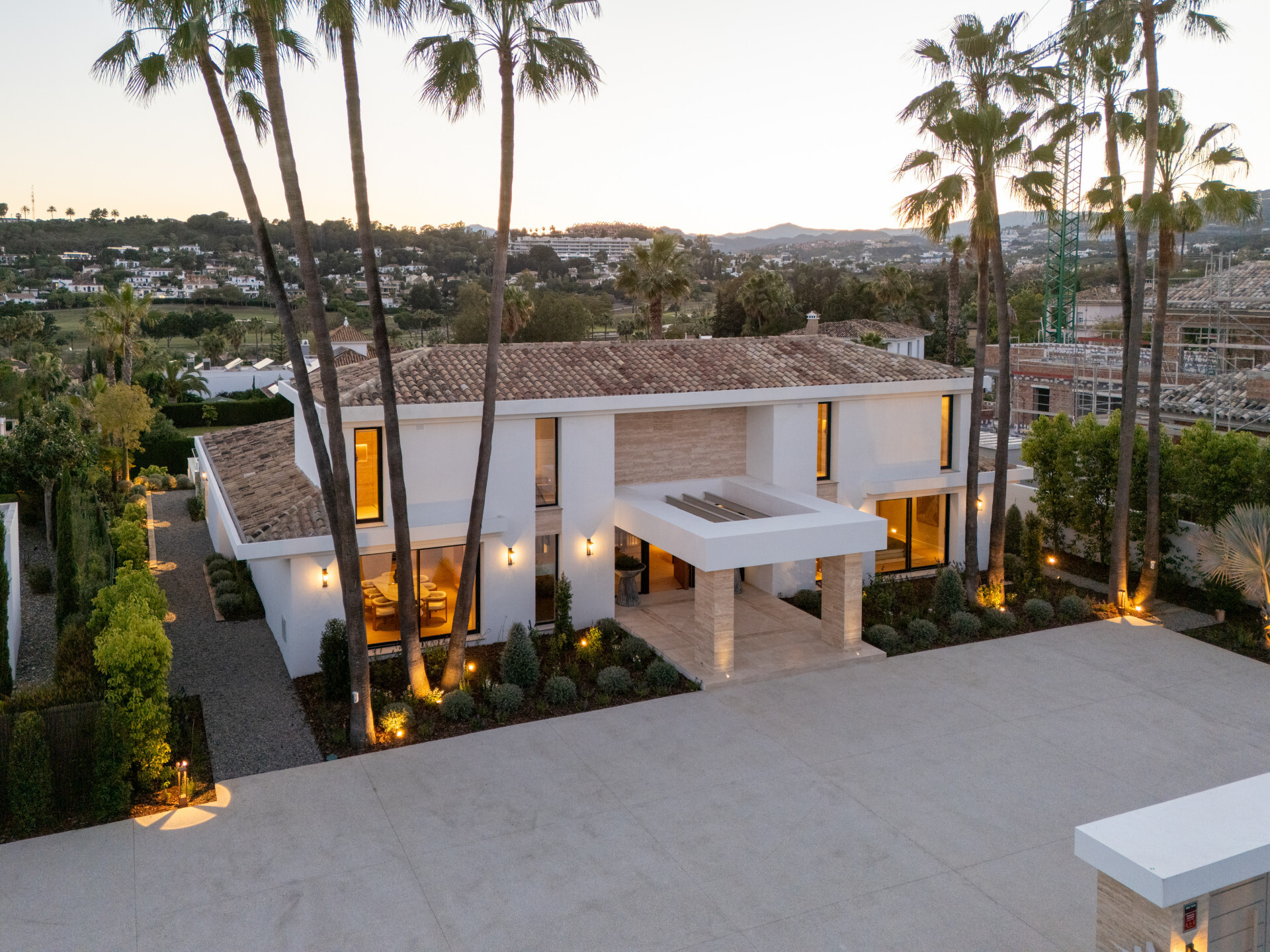 Nestled in the prestigious Aloha area of Nueva Andalucía, this exceptional residence captivates with its unique architectural design and serene ambiance. A seamless fusion of natural materials and contemporary elements defines its striking façade—sharp lines and expansive windows contrast beautifully with traditional roof tiles and lush greenery, creating a timeless yet modern aesthetic.