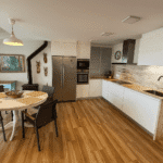 Main Floor: A light-filled open-plan living and dining area with a cozy wood-burning stove, a modern fully-equipped kitchen, and a guest WC. Expansive sliding doors open to a large sun-soaked terrace with a BBQ area, leading to the private garden and the beach beyond.