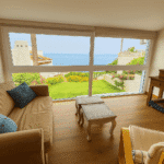 Located within a small, tranquil community, residents enjoy access to manicured communal gardens and a shared swimming pool, all set against the backdrop of the sparkling sea.