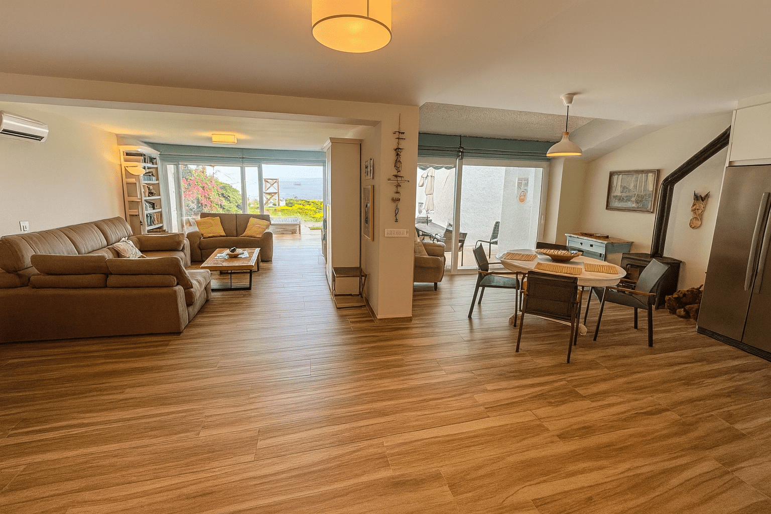 Nestled in the picturesque beachfront community of Bahia Dorada, just west of Estepona, this beautifully renovated villa offers a truly unique opportunity — direct access to the Mediterranean straight from your private garden.