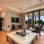 The home is designed for both entertaining and everyday living, offering three expansive living areas that exude warmth and sophistication. A fully equipped modern kitchen seamlessly connects to a bright and inviting dining area, perfect for gathering with loved ones. For more formal occasions, a separate grand dining room sets the stage for memorable evenings. Every space is bathed in natural light, with large windows framing the breathtaking views of the lush gardens.