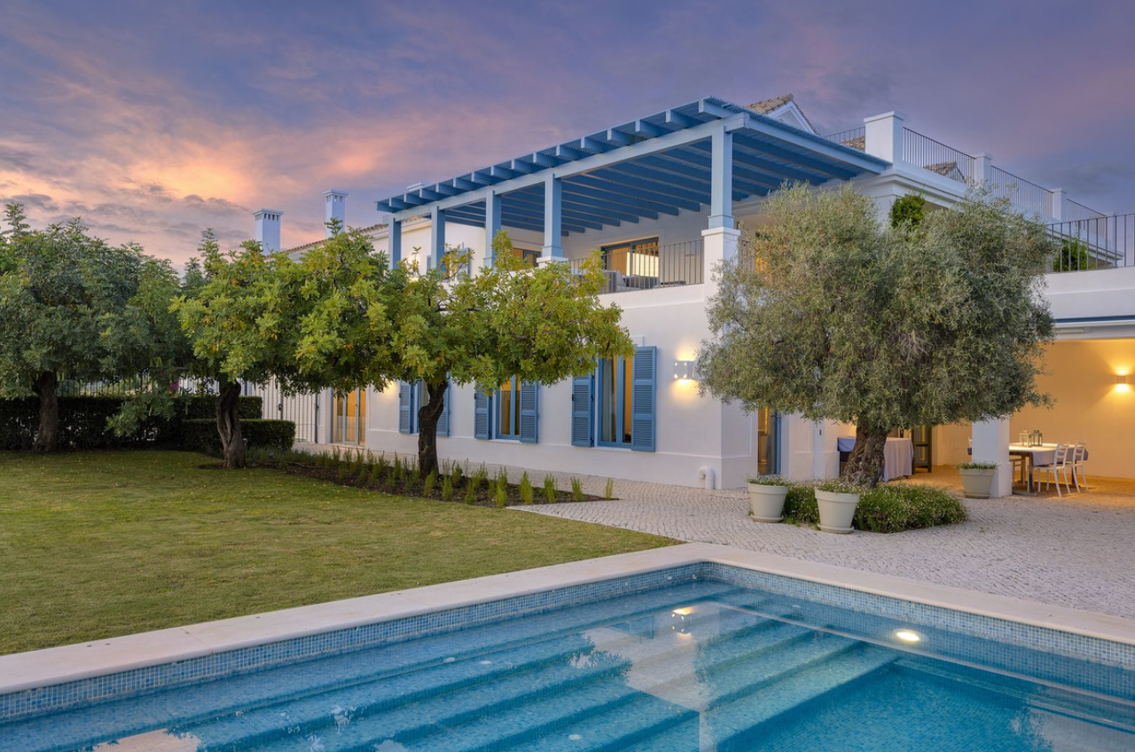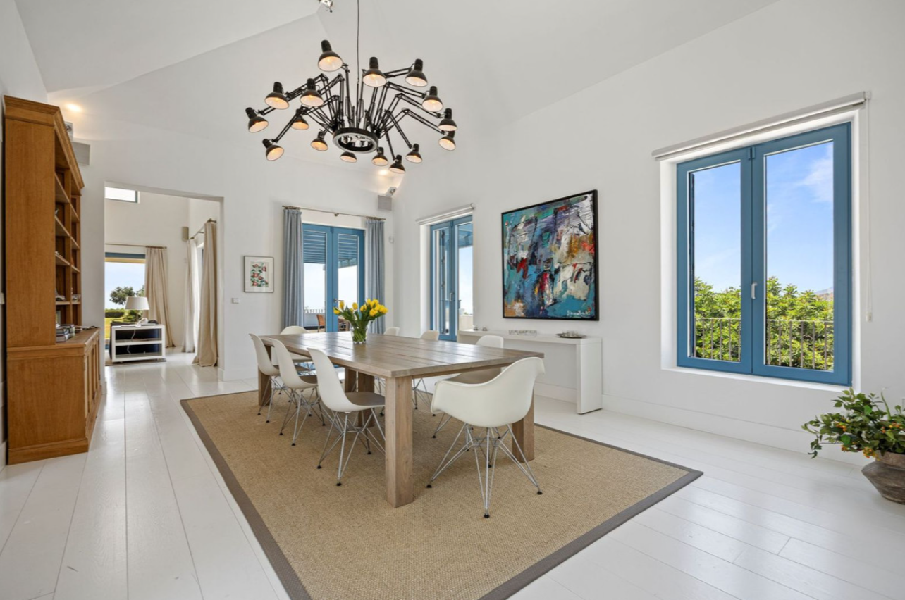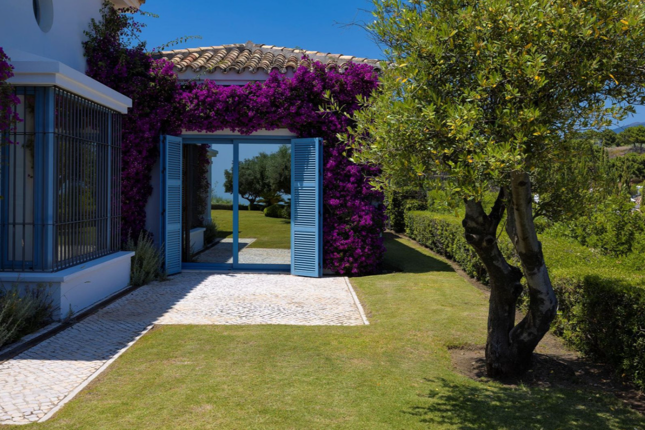 Offering nearly 700 m² of south-facing interior space, the villa is thoughtfully designed for effortless living and entertaining. Five en-suite bedrooms, with the option to add a sixth, are complemented by open-plan living areas filled with natural light, a home cinema, and a games room. Outdoor features include a poolside bar, barbecue area, and expansive terraces ideal for year-round enjoyment. The architecture showcases traditional Andalusian character, with a romantic central courtyard, whitewashed walls, blue shutters, and a layout that balances intimate family comfort with refined entertaining spaces.
