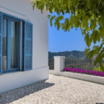 Reached via a 150-meter private driveway, the home immediately captivates with its authentic charm, privacy, and sweeping views of the sea and surrounding mountains.