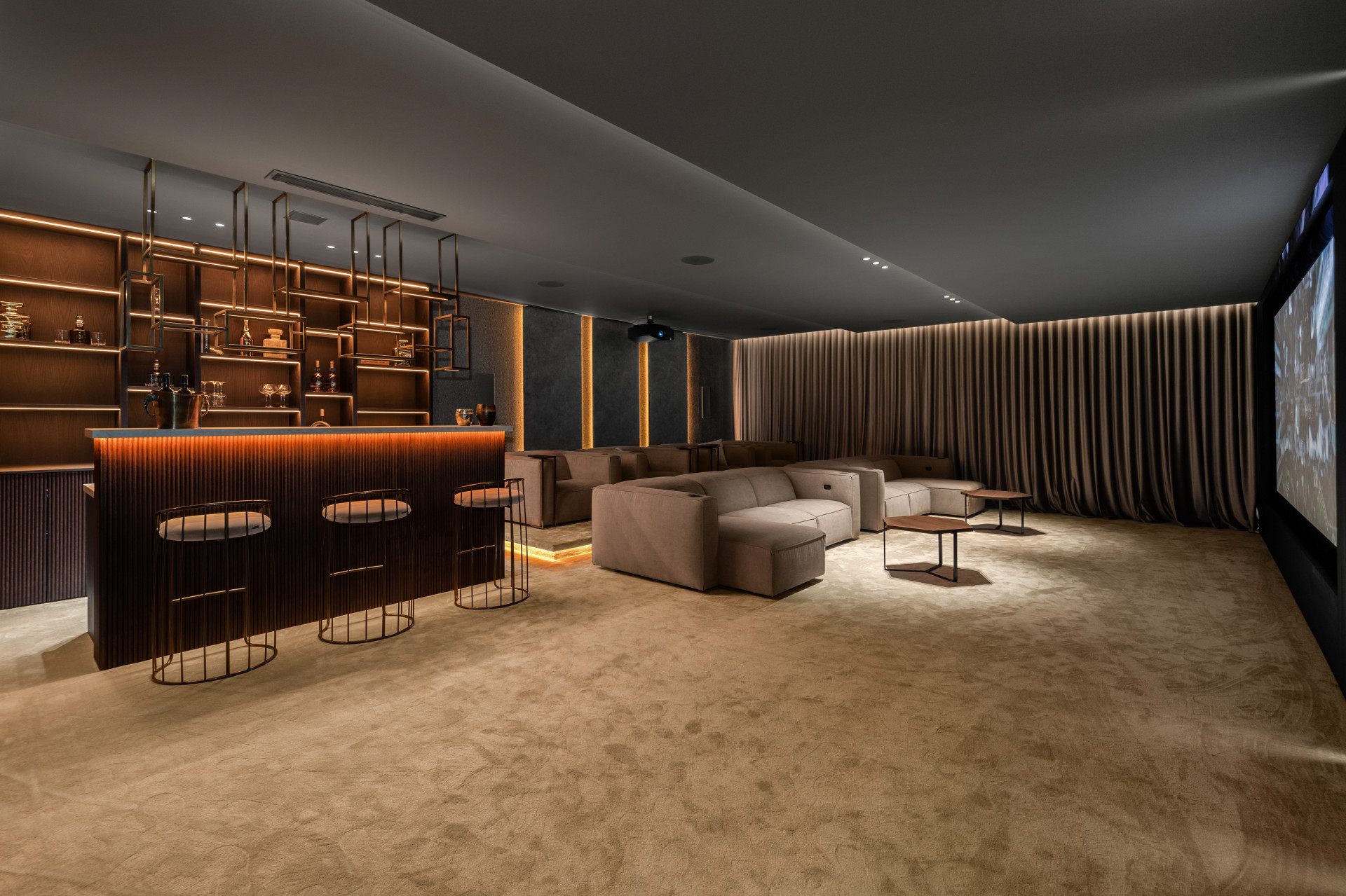 Private cinema room, fully equipped gym, and relaxing sauna