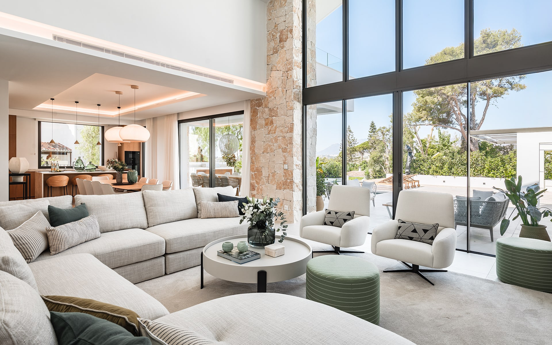 This stunning villa is key ready and fully furnished, professionally styled by La Albaída Interior Design, Marbella, ensuring every detail is impeccable. Designed for luxurious living, it features a private pool and a secure garage accommodating two vehicles. The expansive layout spans two floors, a basement, and a solarium terrace, providing ample space for relaxation and entertainment.