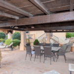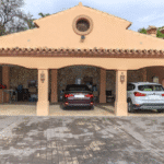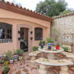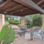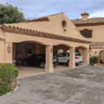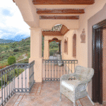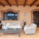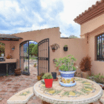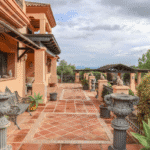 As you approach the villa, a gently winding driveway leads you to an elegant residence surrounded by tranquility and beautiful scenery. A covered three-car porch sits to the side of the property, and an arched entranceway welcomes you into a charming courtyard complete with a barbecue area, water feature, and traditional Andalusian ceramics. This delightful space creates a cosy outdoor dining nook that leads directly into the kitchen.