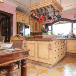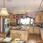 The kitchen itself is spacious and thoughtfully designed, featuring a large central island, generous storage, and a picture window that perfectly frames the sweeping countryside views. A utility room is conveniently located next to the kitchen.