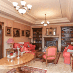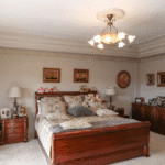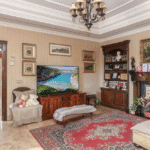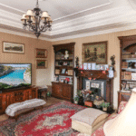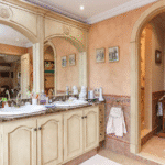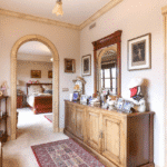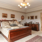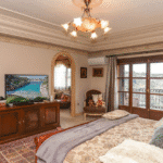 The first of two living rooms offers a warm and inviting atmosphere, centred around a feature fireplace that provides a cosy focal point during the cooler months. Throughout the home, great care has been taken in the details — from the bespoke cabinetry and ceiling covings to the quality of the finishes. A graceful switchback staircase with an arched feature window leads to the upper floor, where you’ll find the impressive master suite. This expansive room includes a private entrance vestibule, dressing room, walk-in wardrobe, and a luxurious ensuite bathroom. Large patio doors open onto a private balcony, the perfect place to enjoy the peace and tranquility of the surrounding landscape.