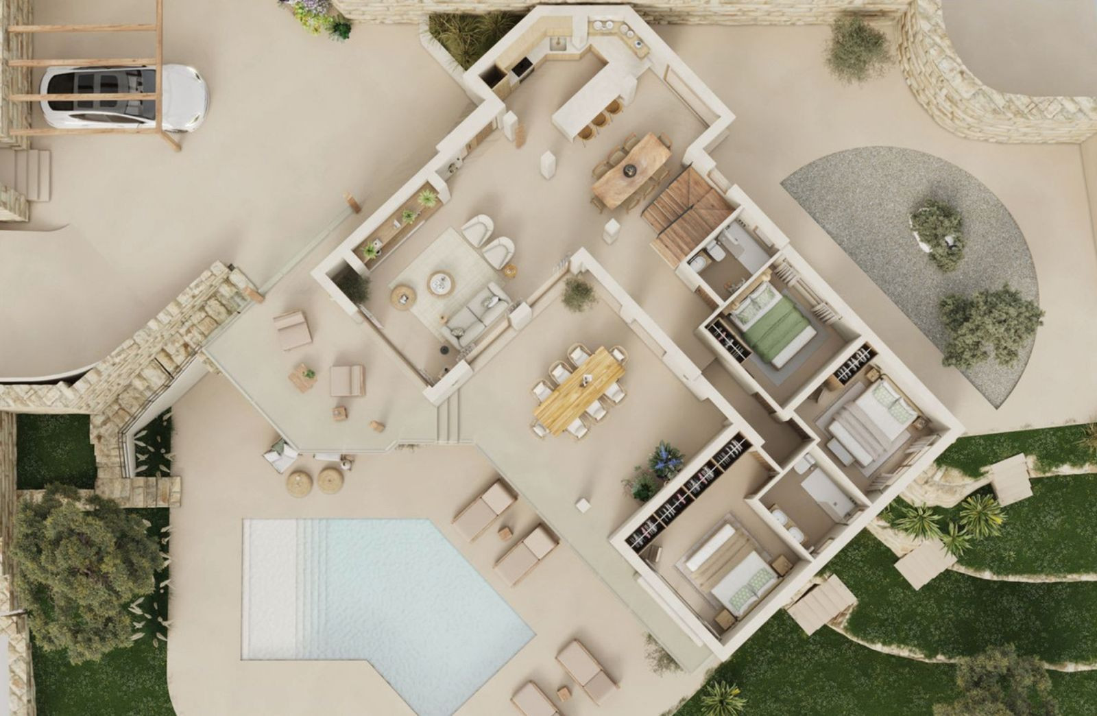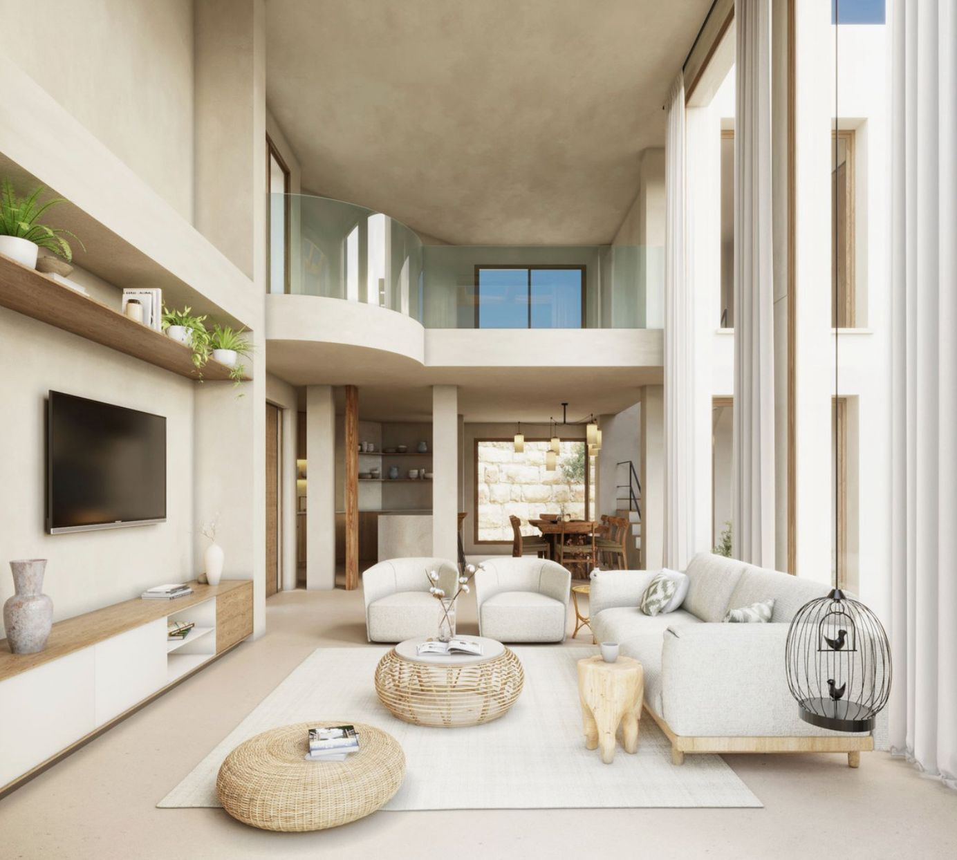 Each of the four spacious bedrooms opens out to its own private terrace, allowing you to wake up to the sound of the sea and the soft warmth of the Mediterranean light. Four beautifully finished bathrooms, including two en suites, offer a touch of luxury with contemporary styling and high-end fixtures.