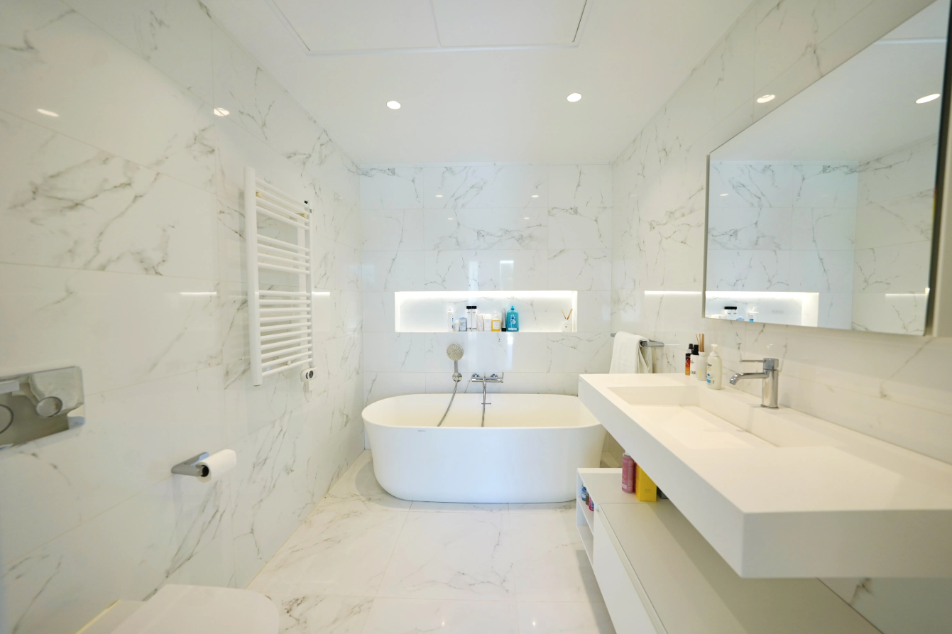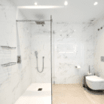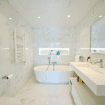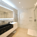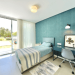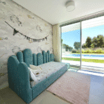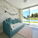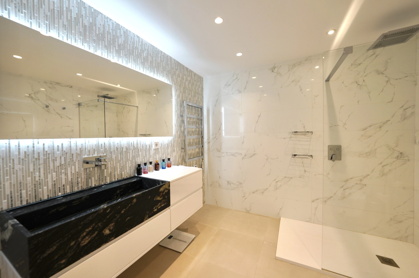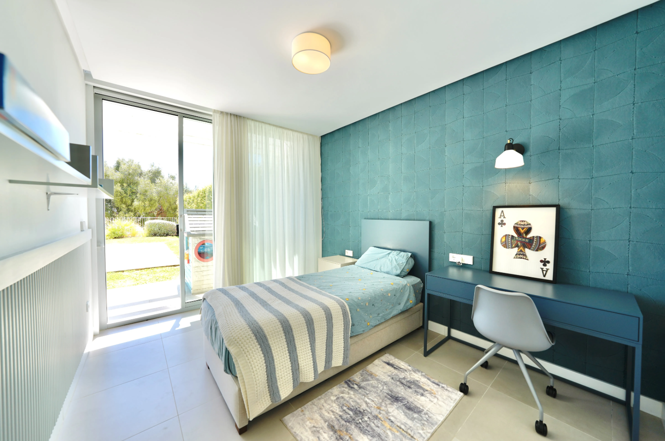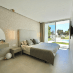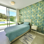 Spanning three thoughtfully designed levels, the villa provides seamless indoor-outdoor living. On the garden level, four spacious bedrooms open directly onto the landscaped grounds and private pool area, creating a tranquil retreat ideal for family and guests. Each bedroom is accompanied by a beautifully finished en-suite bathroom with walk-in showers and elegant fittings. The connection to the poolside terrace enhances the relaxed, resort-like atmosphere of this level.