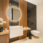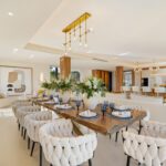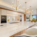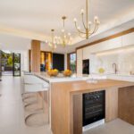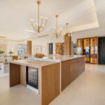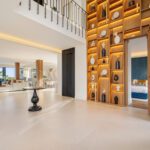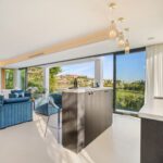Spread across five meticulously designed floors, the property offers state-of-the-art features throughout. Step into a spacious, open-plan living area that seamlessly connects to a custom-designed gourmet kitchen, featuring a striking natural stone island with seating and a bespoke wine display.