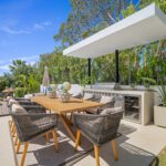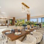 Expansive windows flood the interiors with natural light and lead out to sunny terraces and an elegant infinity pool, framed by lush tropical trees and mature gardens.