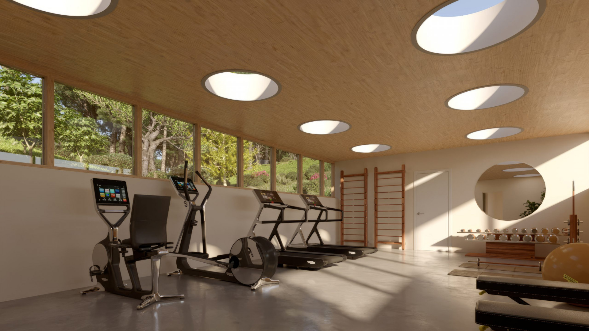 Beyond the villas, the gated community offers a host of exceptional amenities. From lush, landscaped grounds with cork oaks and olive trees to a magnificent communal pool that invites relaxation, every detail enhances your living experience. Stay active in the state-of-the-art gym, enjoy the tennis and paddle courts, or rejuvenate in the spa featuring a sauna, massage rooms, and individual treatment areas.