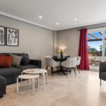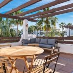 Featuring beautiful marble floors throughout, the apartment boasts a bright and spacious layout, ideal for both relaxing and entertaining. The living area extends onto a private terrace, perfect for enjoying warm evenings or morning coffee.