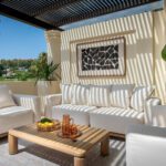 Discover refined living in this exceptional 3-bedroom, 2.5-bathroom duplex penthouse, nestled within the exclusive gated community of Las Alamandas in the heart of Nueva Andalucía’s Golf Valley.