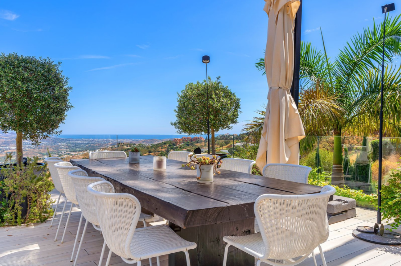 Perched in the tranquil hills above Marbella, this remarkable three-level villa offers uninterrupted views of the Mediterranean coastline, majestic mountains, and the sparkling sea. Wake up to breathtaking sunrises in a serene hillside neighborhood that also features an international German school — the perfect balance of nature, privacy, and convenience.