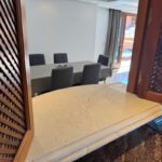 Facing southeast, the apartment enjoys abundant natural light and stunning views of the sea and communal swimming pool. The interior is designed for year-round comfort, featuring air conditioning and underfloor heating, along with marble flooring throughout.