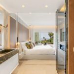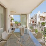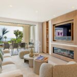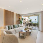 Located between Marbella and Estepona, this fully renovated apartment offers refined coastal living in the prestigious beachfront community of Bahía del Velerín. Surrounded by lush tropical gardens and featuring a stunning pool area with a snack bar and 24/7 security, the residence provides direct access to one of the region’s finest beaches. Inside, the apartment boasts sea and garden views, underfloor heating, and a glass-enclosed balcony that extends the lounge area for year-round comfort. Every detail has been thoughtfully designed, from the open-plan kitchen with premium German appliances to the sleek electric fireplace, Bang & Olufsen sound system, and custom-made furnishings. Additional high-end features include a wine fridge, invisible hob, Japanese toilets, hidden laundry, and smart storage solutions—all combining style, function, and luxury in one exceptional home.