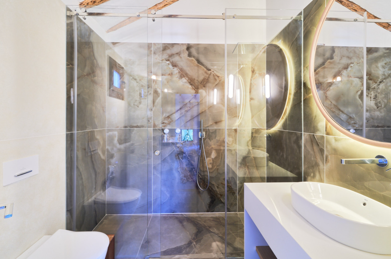 Designed with security and year-round comfort in mind, the property is equipped with a state-of-the-art alarm system, underfloor heating, and independent air conditioning in every room. A grand entrance with an elegant water feature and tastefully tiled forecourt sets the tone for the home’s refined aesthetic.