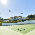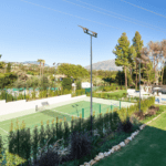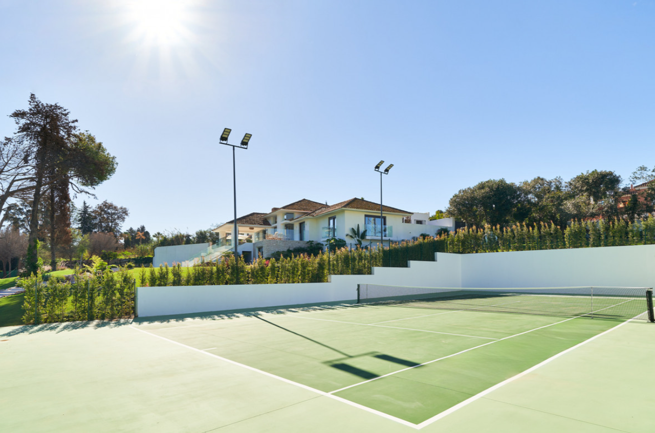 The estate features a professional-grade tennis court, multiple alfresco dining spaces, both shaded and sun-drenched terraces, as well as a fully outfitted outdoor kitchen with barbecue—ideal for hosting gatherings in style.
