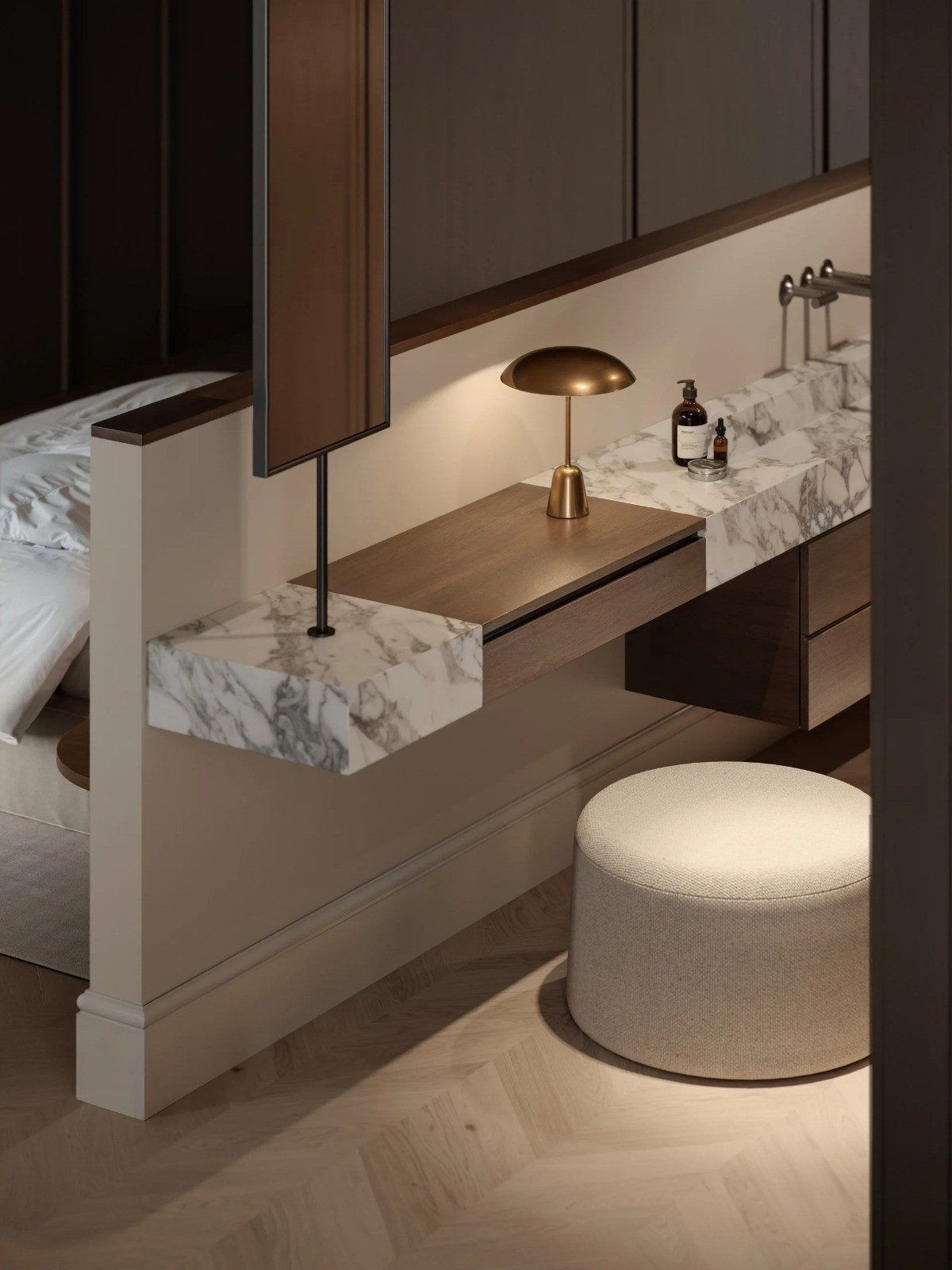 This stunning home captures the spirit of Scandinavian design, combining natural wood and stone with elegant French-inspired touches.