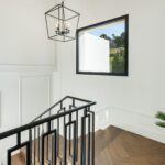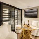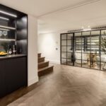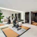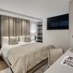 Each of the three bedrooms on this floor includes its own en-suite bathroom, providing comfort and privacy for family and guests alike. A guest WC adds extra convenience. The floors and staircases throughout the bedroom levels are finished in elegant herringbone-patterned wood, imported from Sweden, adding warmth and sophistication to the overall design.