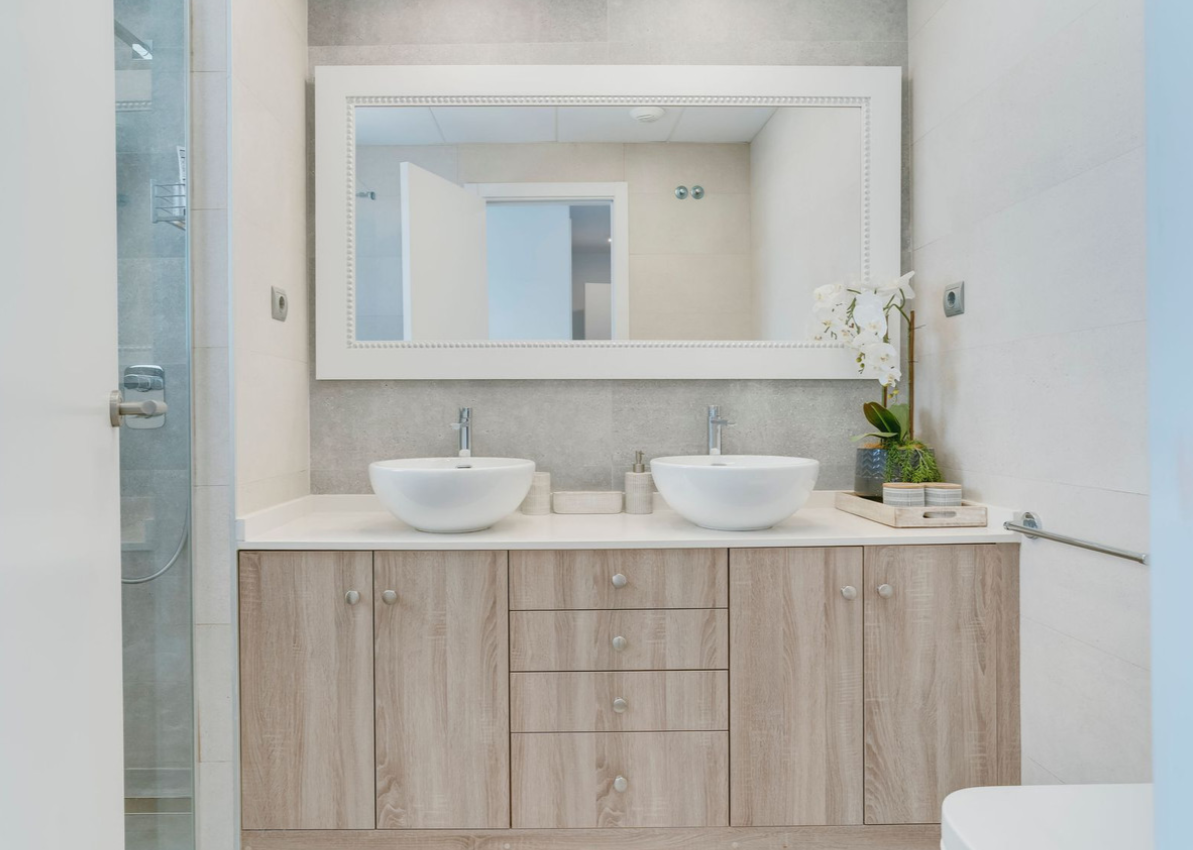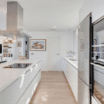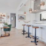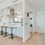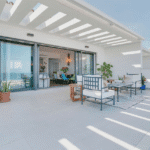 Inside, the penthouse features a bright and modern open-plan layout, with floor-to-ceiling windows that fill every space with natural light and connect the interiors seamlessly to the terrace. The high-end kitchen is fitted with top-of-the-line appliances from Gaggenau, Siemens, and Porcelanosa, while the sleek Schüco windows add both style and superb energy efficiency. The master bedroom is a haven of comfort with an en-suite bathroom offering direct sea views — even from the shower — and all three bedrooms include elegant built-in wardrobes and luxury finishes.