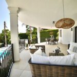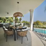 Bathed in sunlight thanks to its desirable south-facing orientation, the home offers panoramic views of the Mediterranean Sea, lush golf courses, and the majestic surrounding mountains. Every detail has been thoughtfully curated to provide both comfort and style, from expansive interiors to seamlessly integrated outdoor living spaces.