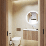 Top-quality materials from renowned global brands, such as Saloni, Roca, Cosentino, Vescom, Dekton, and Grohe, bring sophistication to the kitchen and bathrooms. This integration ensures the home is not only visually striking but also practical and durable.