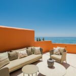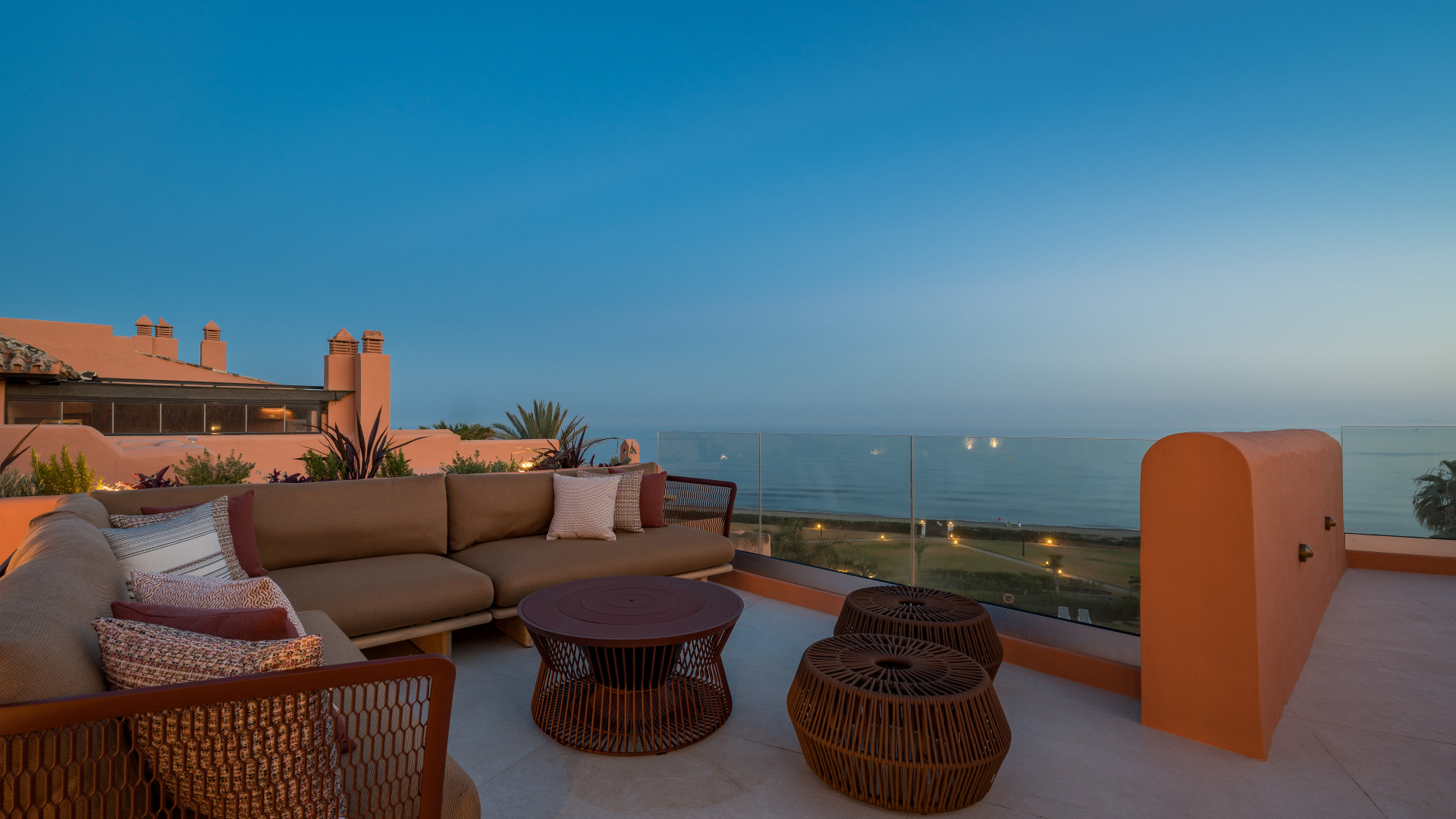 The property stands out with its luxurious interior, featuring stylish contemporary furniture, custom-built wardrobes, and a newly installed Siematic designer kitchen equipped with Miele appliances. Additional high-end amenities include a Bang & Olufsen sound system, an electric fireplace, and elegant Kettal outdoor furniture. From both terraces, you can enjoy breathtaking views of the Mediterranean, stretching along the shoreline and all the way to Gibraltar and North Africa, highlighting the penthouse’s prime frontline beach location.