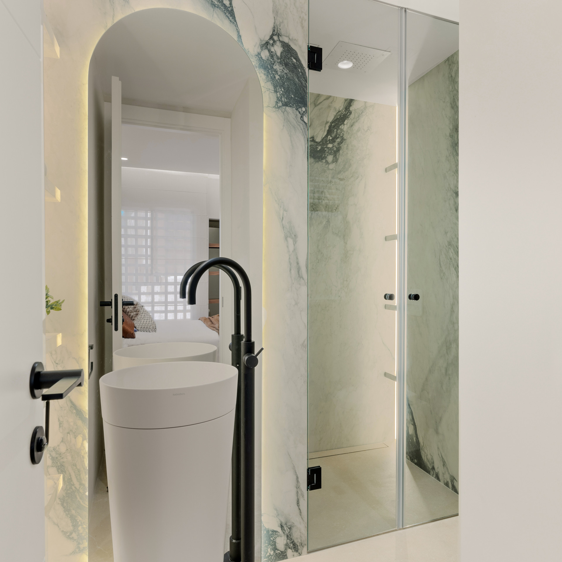 This exceptional duplex penthouse boasts 4 bedrooms and 5 bathrooms, covering over 240 m² of interior space, plus an additional 200 m² of terraces. The expansive layout offers a villa-like living experience.