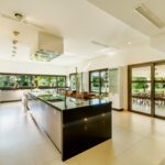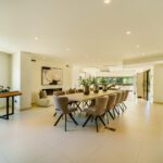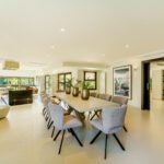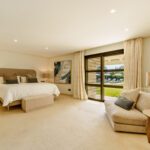 Spanning 653m² on a spacious 3,062m² flat plot, the property blends effortlessly with its natural surroundings. Its single-level design ensures a seamless flow, with each of the five bedrooms providing direct access to the lush, mature garden.