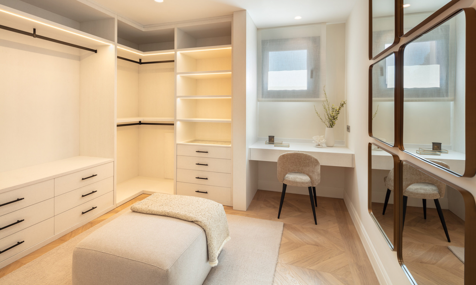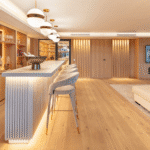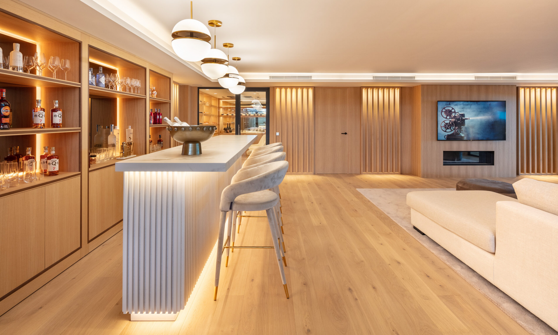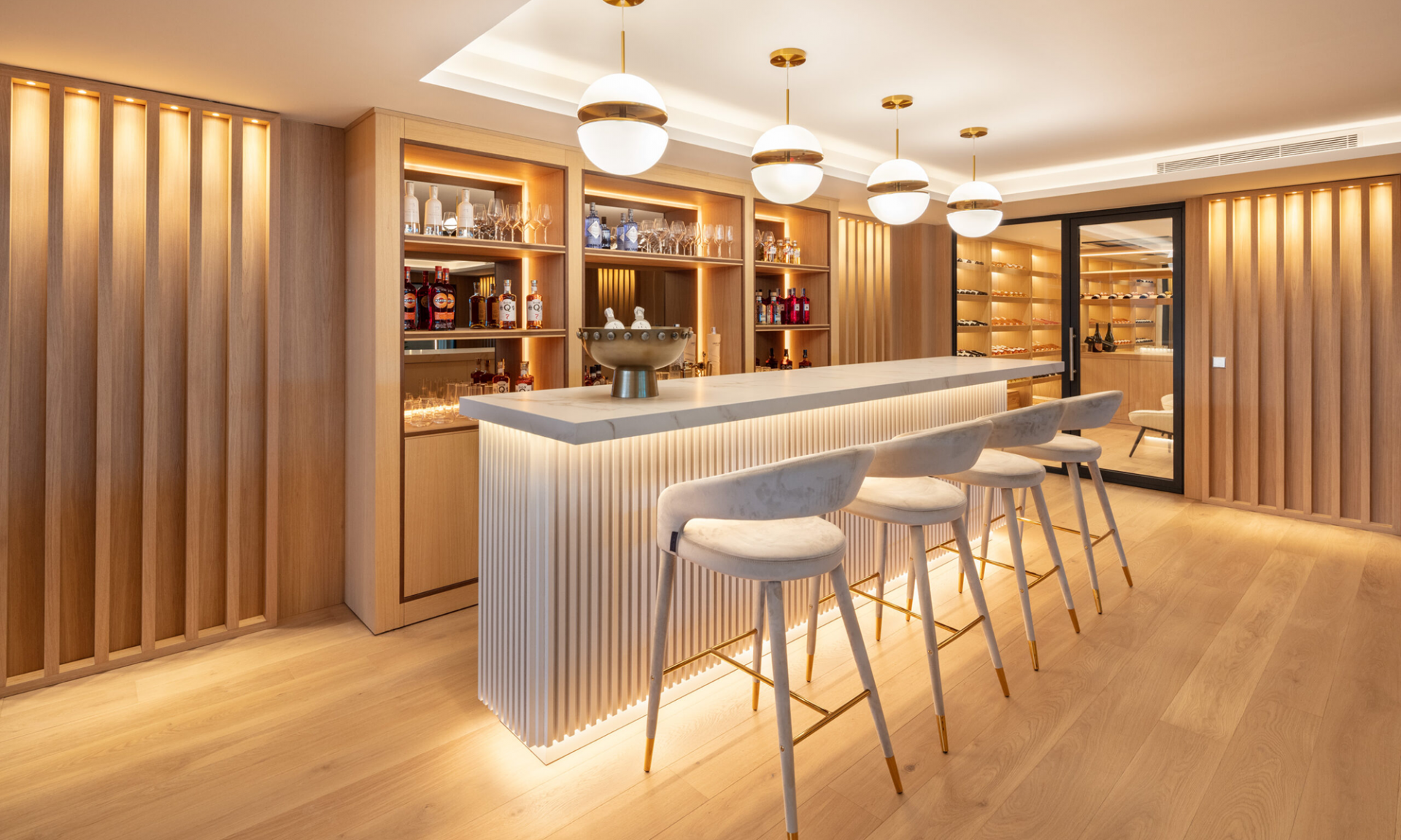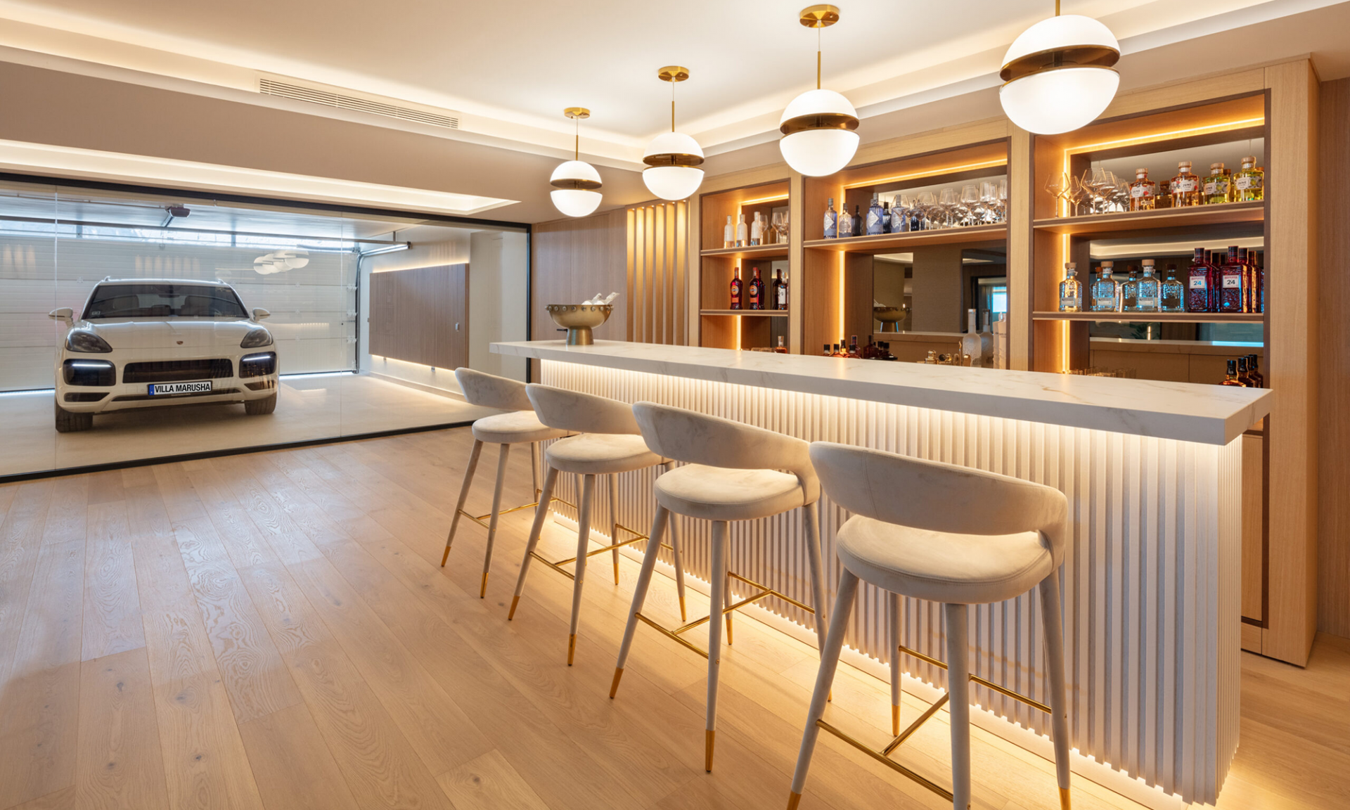 Elegant wooden floors add warmth and sophistication, enhancing the villa’s modern design and architectural finesse.