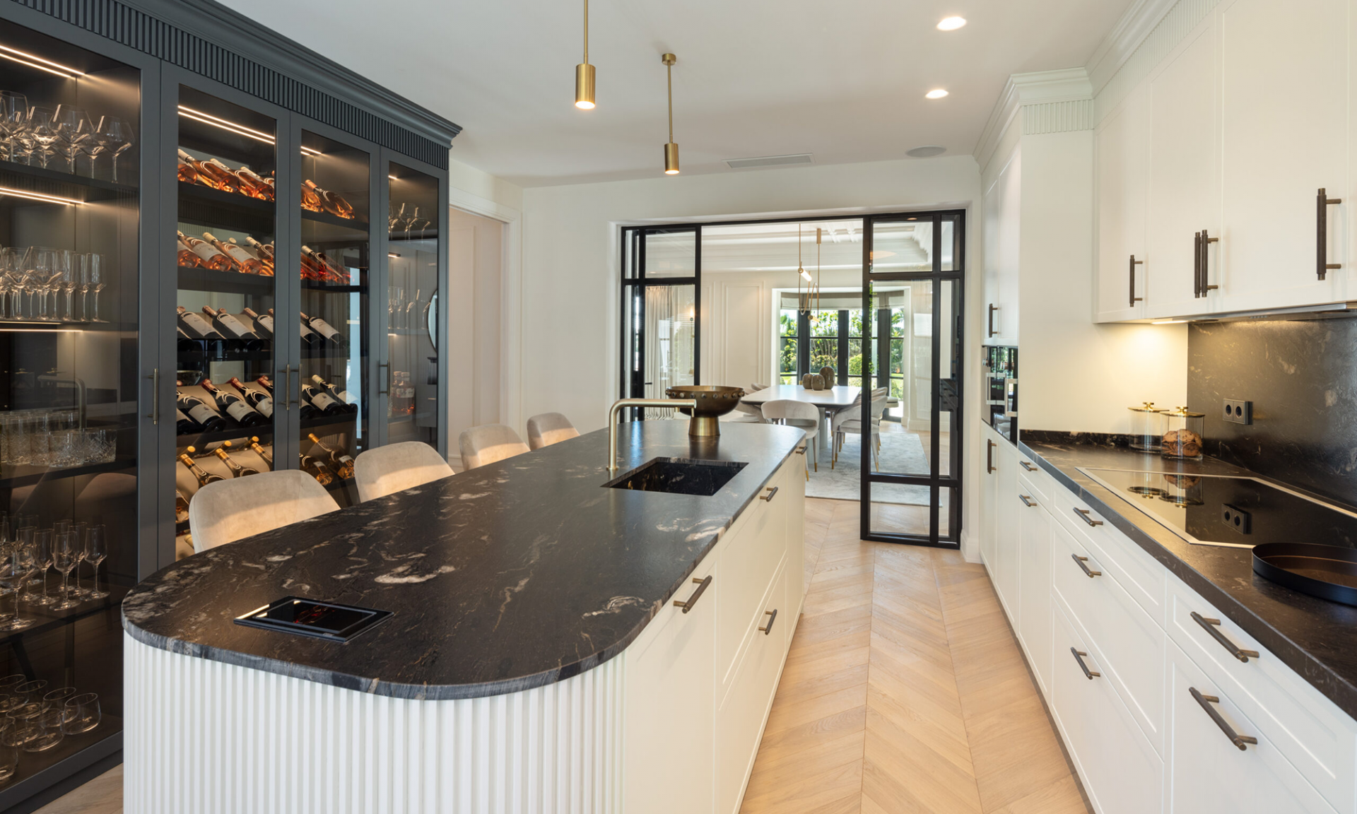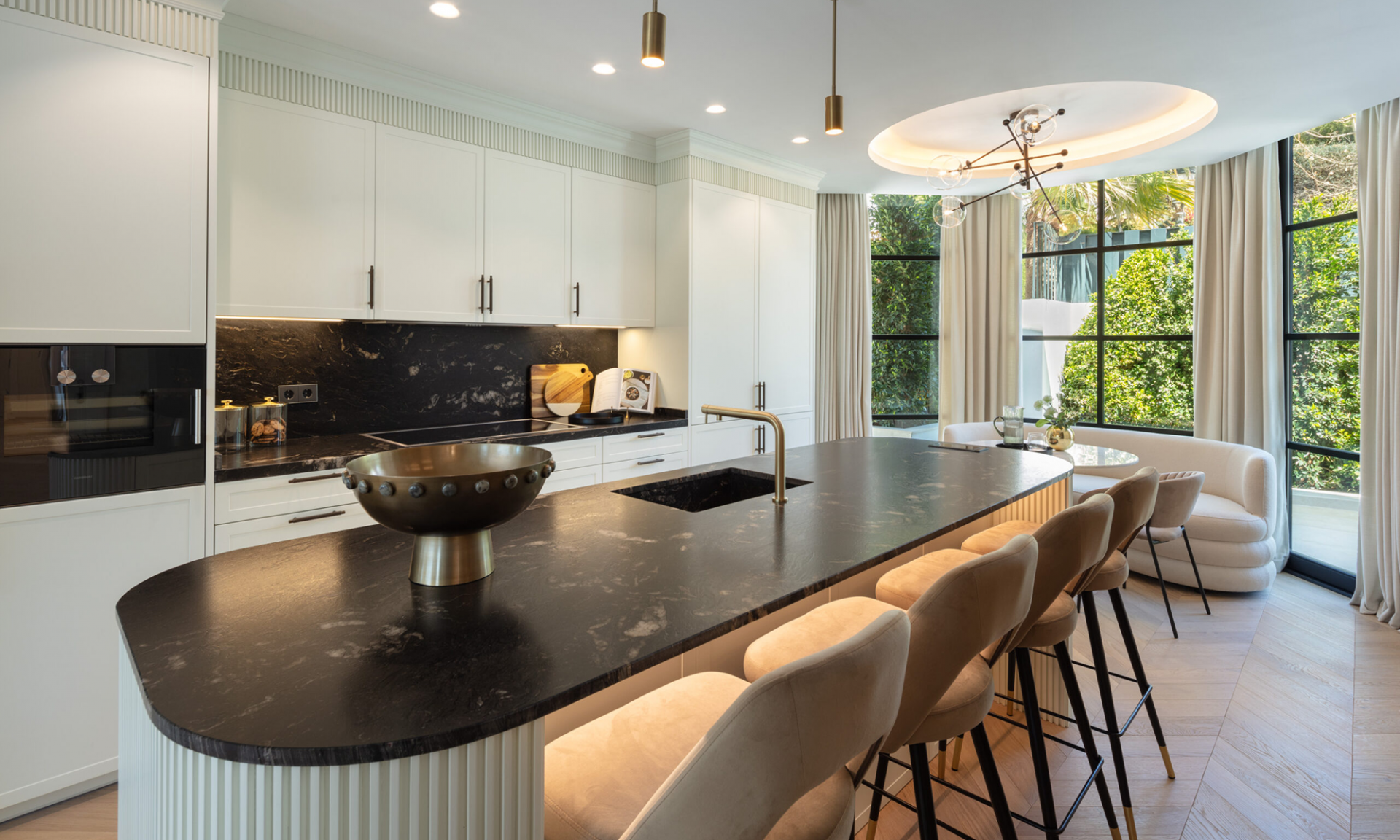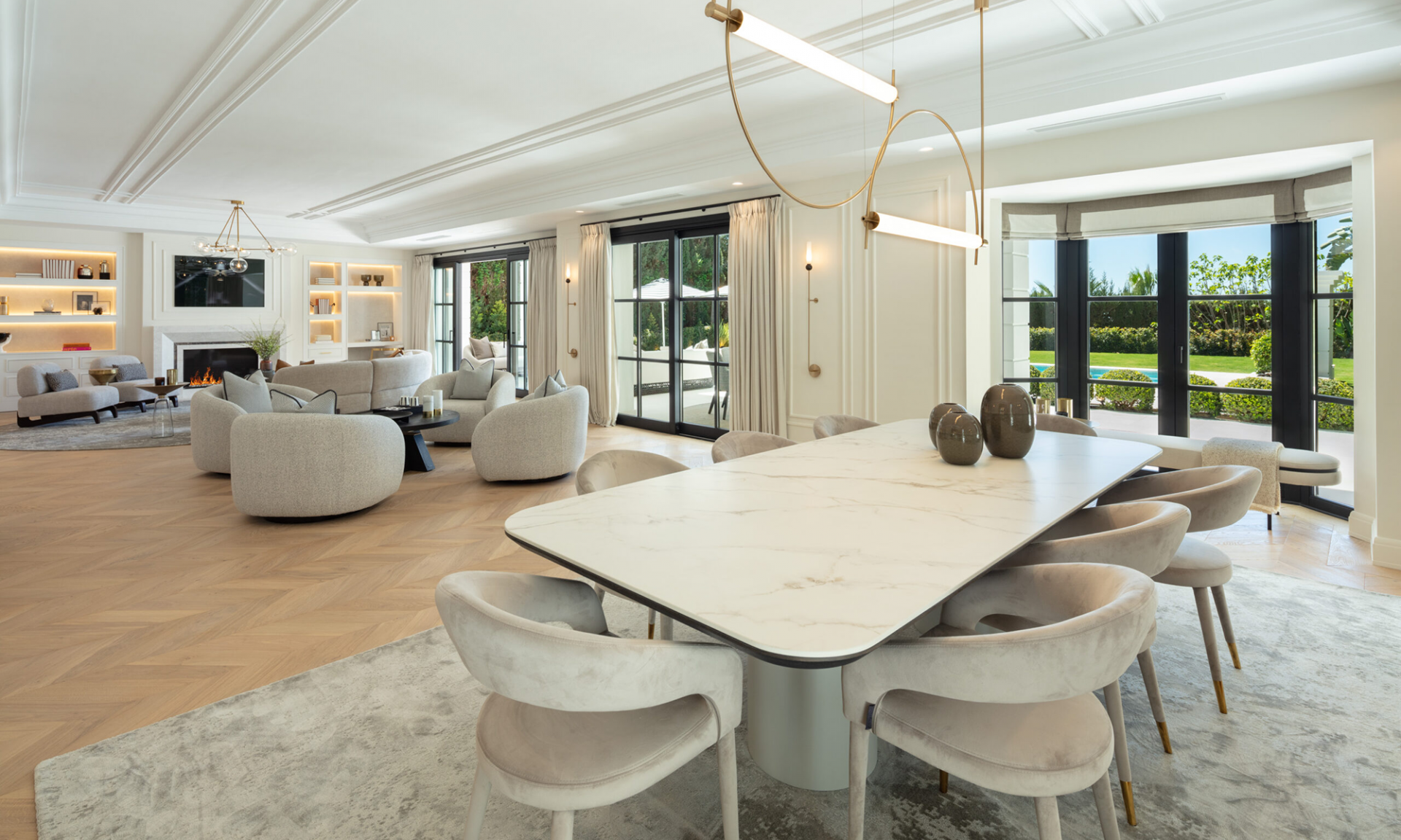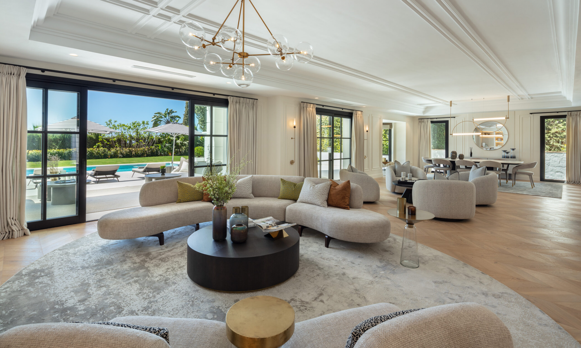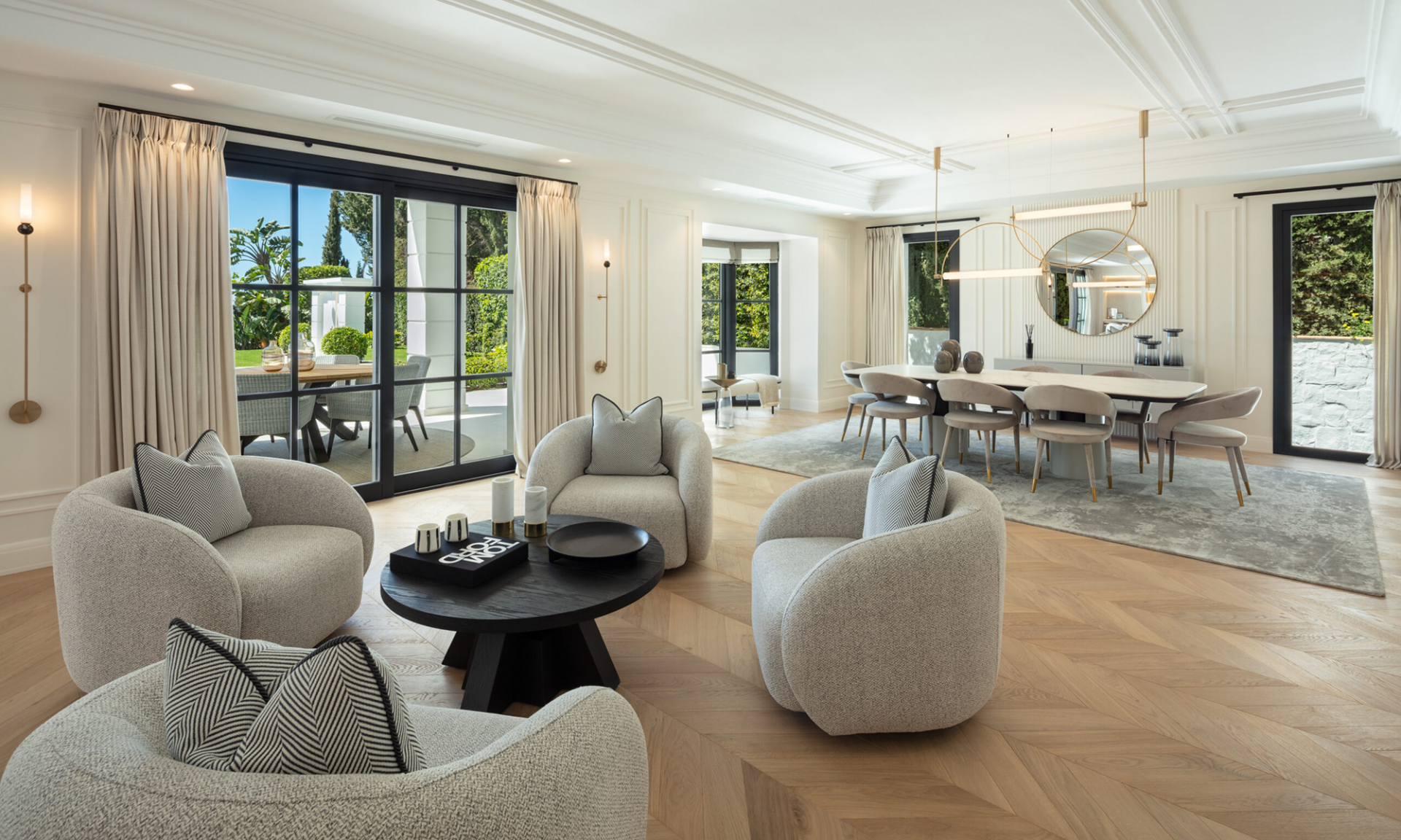 Set on a generous 1,531㎡ plot, the residence enjoys a secluded setting surrounded by lush greenery, creating a peaceful retreat in one of Marbella’s most sought-after neighborhoods.