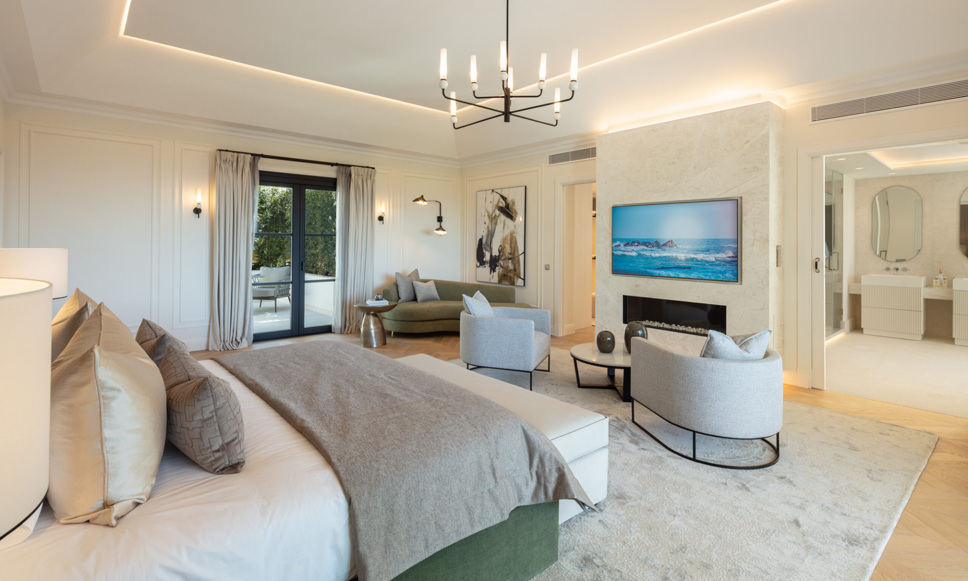 The outdoor areas are thoughtfully designed to embrace Marbella’s year-round sunshine. Expansive terraces and a meticulously landscaped garden provide the ideal setting for entertaining or simply enjoying the natural beauty of the surroundings.