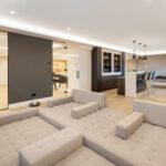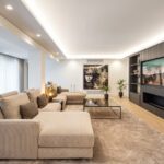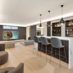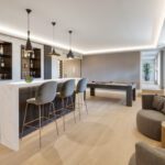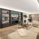A chef-inspired kitchen with dining space opens seamlessly into a cozy yet elegant living room, perfect for both intimate evenings and vibrant gatherings.