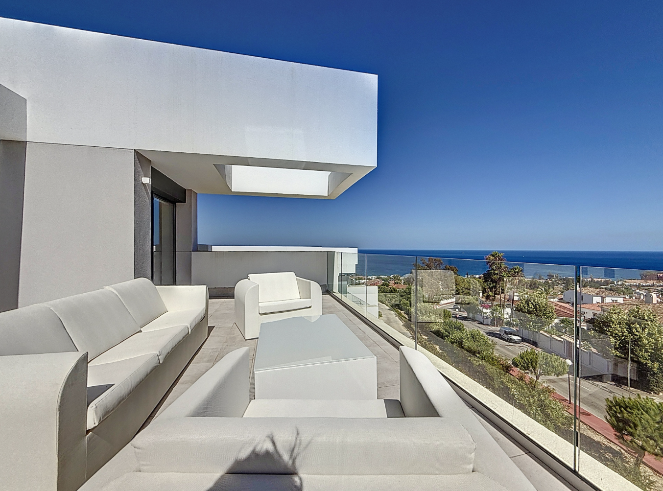In einer privilegierten Lage auf den Hügeln von La Duquesa, nur westlich von Estepona, besticht dieses herrliche Drei-Zimmer-Penthouse mit seiner zeitgenössischen Architektur und Blick auf das Meer und die andalusische Küste.