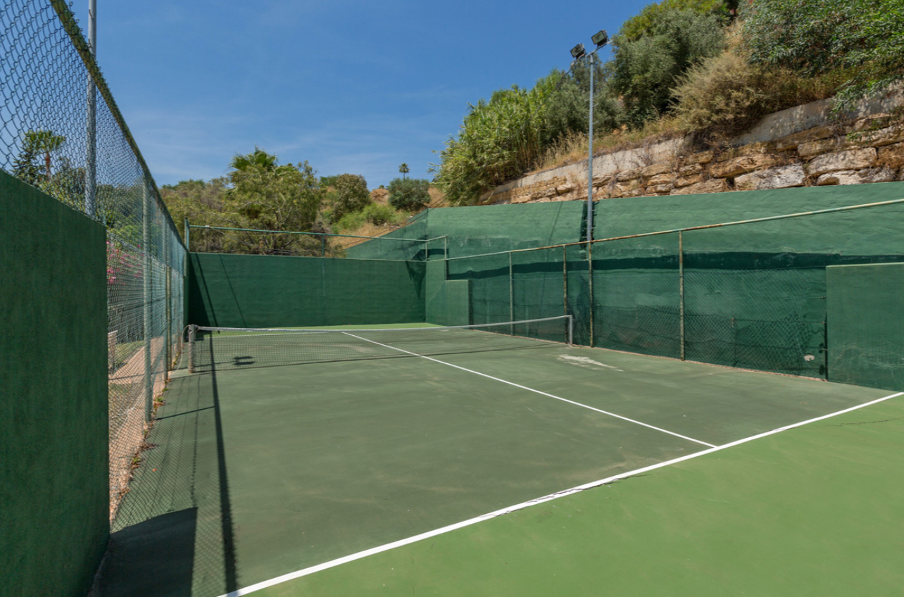 Additional highlights include a private paddle tennis court, billiard room, wine cellar, and convenient access to the Marbella Football Academy.