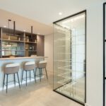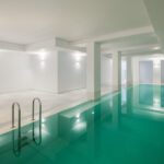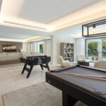 The lower level—also above ground and directly accessible from the garden and pool—is thoughtfully divided into two distinct wings. The east wing is a sanctuary of wellness, featuring a heated indoor pool, spa, gym, and massage area. The west wing offers the ultimate in entertainment with a cinema room, games lounge, bar, wine cellar, and ample storage.