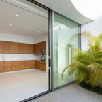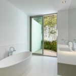 The carefully designed entrance provides convenient parking and creates a memorable first impression for guests. A spiral staircase outdoors offers direct access to the garden. Inside, the ground floor features a fully equipped kitchen, spacious living and dining areas, and four beautifully designed bedrooms, each with its own unique appeal. Large windows and sliding glass doors flood the interior with natural light and offer a seamless connection to the outdoor spaces.