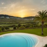The villa’s captivating garden includes an egg-shaped pool with soothing light blue tiles, surrounded by tall palm trees and lush grass, providing plenty of room for relaxation and entertaining. The carefully chosen terrace tiles further enhance the villa's distinctive character. This architectural gem offers an exceptional living experience with stunning views and a prime location within the prestigious Finca Cortesin Resort, making it the perfect retreat.