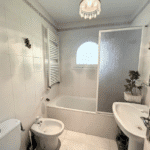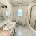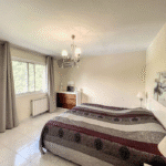 The lower level of the villa features an expansive master suite with a luxurious en suite bathroom and walk-in wardrobe, providing the perfect private retreat. Two additional well-proportioned bedrooms, each with fitted wardrobes, share another full bathroom, ensuring plenty of space for family or guests. The villa is equipped with air conditioning throughout, providing both heating and cooling for year-round comfort.
